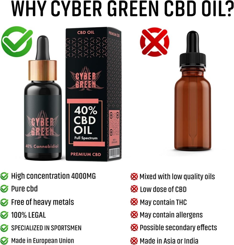 En el competitivo mercado de los aceites de CBD, Cybergreen destaca por ofrecer un producto de espectro completo con una concentración excepcional del 40%. Su fórmula avanzada incluye aceite MCT derivado del coco, garantizando una absorción superior y resultados más efectivos. Este aceite no solo es orgánico, sino que también está completamente libre de THC, asegurando tranquilidad para sus usuarios.